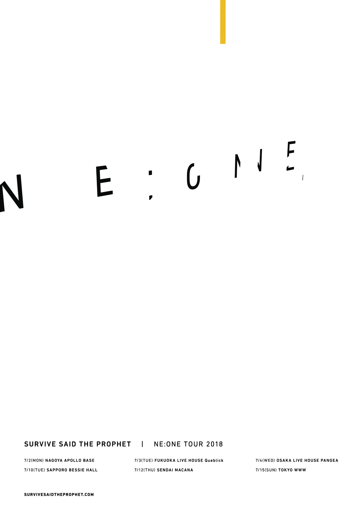 またSurvive Said The Prophetはこのシングルを引っ提げてリリースツアー『NE:ONE TOUR 2018』(全6公演)開催決定!