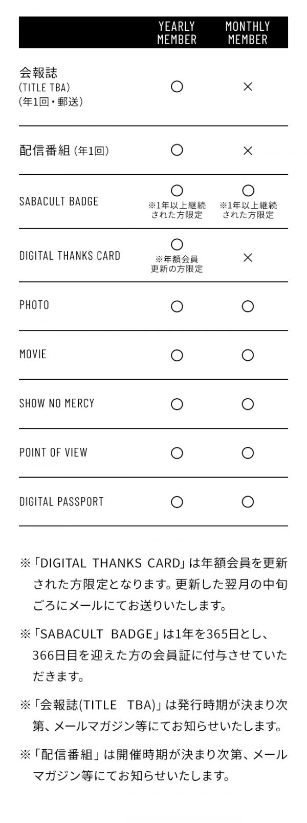 YEARLY MEMBER&MONTHLY MEMBERの方で1年経過した全ての会員の方に継続の証としてSABACULTロゴと継続年数を記したバッジをデジタル会員証に追加いたします!
